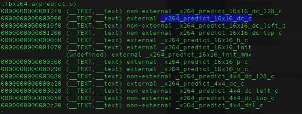 在最終對(duì)外發(fā)布的 SDK 中_x264_predict_16x16_dc_c 還是打著 external 的標(biāo)簽, 及對(duì)外可見。