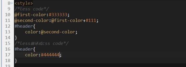 注:在 Less 中的變量實(shí)際上就是一個(gè)“常量”,因?yàn)樗鼈冎荒鼙欢x一次。 上面代碼明顯可以看出后面的@color 覆蓋了前面的@color。