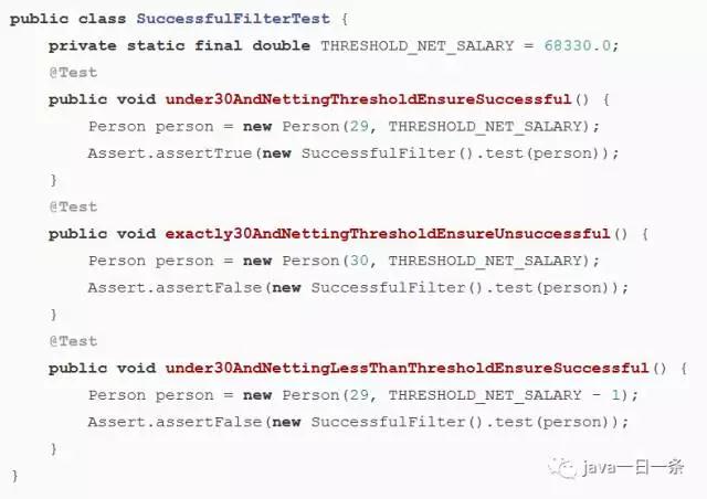 我們對(duì)代碼的目的以及為什么在代碼中運(yùn)用Magic number知道得并不多,可是我們能夠創(chuàng)立一組測(cè)驗(yàn),已知輸入發(fā)生已知輸出。例如,經(jīng)過(guò)做一些簡(jiǎn)略的數(shù)學(xué)和處理構(gòu)成成功的閾值薪水問(wèn)題,我們發(fā)現(xiàn)如果一個(gè)人的年紀(jì)在30歲以下,且每年大約賺68,330美元,那么他被認(rèn)為是成功的(依照本規(guī)范的規(guī)范)。盡管我們不知道那些magic number是什么,可是我們知道它們的確削減了初始的薪水值。因而,68,330美元的閾值是扣除前的基本工資。經(jīng)過(guò)運(yùn)用這些信息,我們能夠創(chuàng)立一些簡(jiǎn)略的測(cè)驗(yàn),例如: