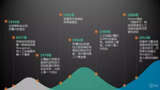 人工智能從 1956 年提出概念以來履歷了綿長的開展進(jìn)程,中心有兩次頂峰,兩次低谷,現(xiàn)在是第三次頂峰,而帶來開展崎嶇的是機(jī)器學(xué)習(xí)算法的變遷。