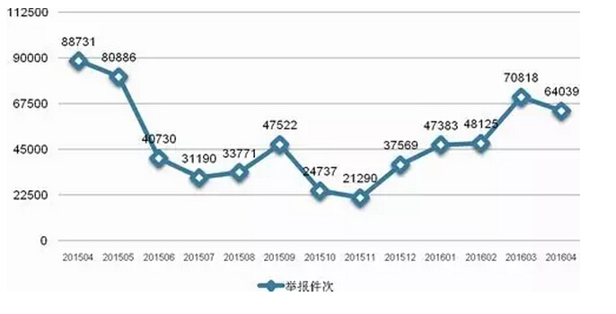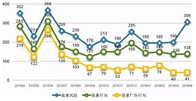 2016年4月,12321舉報中心受理了網(wǎng)民舉報的不良APP共64039件次,聯(lián)合相關(guān)應(yīng)用商店對306款存在各類安全風(fēng)險的不良APP進行了下架處理。