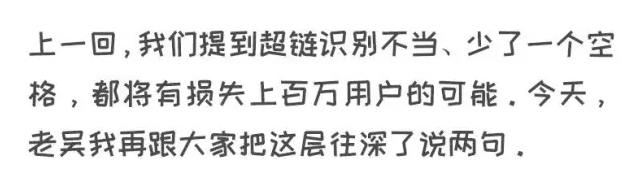 所以說,還是前面那句話,技術(shù)永遠(yuǎn)會(huì)隨著時(shí)代的變革而展現(xiàn)出不同的生機(jī),產(chǎn)品和運(yùn)營(yíng)也當(dāng)通過一次次的AB測(cè)試得出數(shù)據(jù),從而優(yōu)化技術(shù)細(xì)節(jié).今天的內(nèi)容老吳點(diǎn)到為止,這是我看到一些App短信推送的小細(xì)節(jié),非常簡(jiǎn)單,其實(shí)很多技術(shù)都知道,我來提個(gè)醒而己
