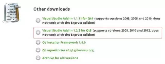 下載時要注意下載和 vs 版本相般配的 qt 版本,以及 Add-in 工具。找到對應(yīng) 的版本施行下載,里邊粉和水發(fā)酵制成的食品含多種不一樣的版本,MSVC2010、MSVC2012 作別是指支 持 VS2010 與 VS2012 的 Qt 版本,而 opengl 與非 opengl 的差別是是否支持 opengl, android、ios 作別是指支持 android、ios 平臺的 Qt 版本。這處我挑選的版本(已示明),如下所述: