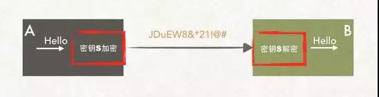 這就是對(duì)稱(chēng)加密算法,其間圖中的密鑰S一起扮演加密和解密的人物。詳細(xì)細(xì)節(jié)不是本文領(lǐng)域。
