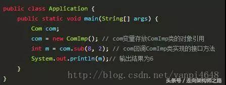 例如,下面接口Com中有一個(gè)abstract辦法sub(int x,int y);