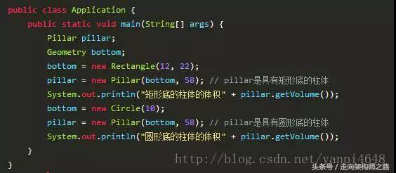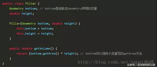 上述Pillar類中,bottom是用詳細(xì)類Circle聲明的變量,如果不觸及用戶需求的改動(dòng),上面的Pillar類的規(guī)劃沒有任何不當(dāng),但是在某個(gè)時(shí)分,用戶期望Pillar能創(chuàng)立出底是三角形的柱體。明顯上述Pillar類無法創(chuàng)立出這樣的柱體,即上述規(guī)劃的Pillar類不應(yīng)對(duì)用戶的這種需求。